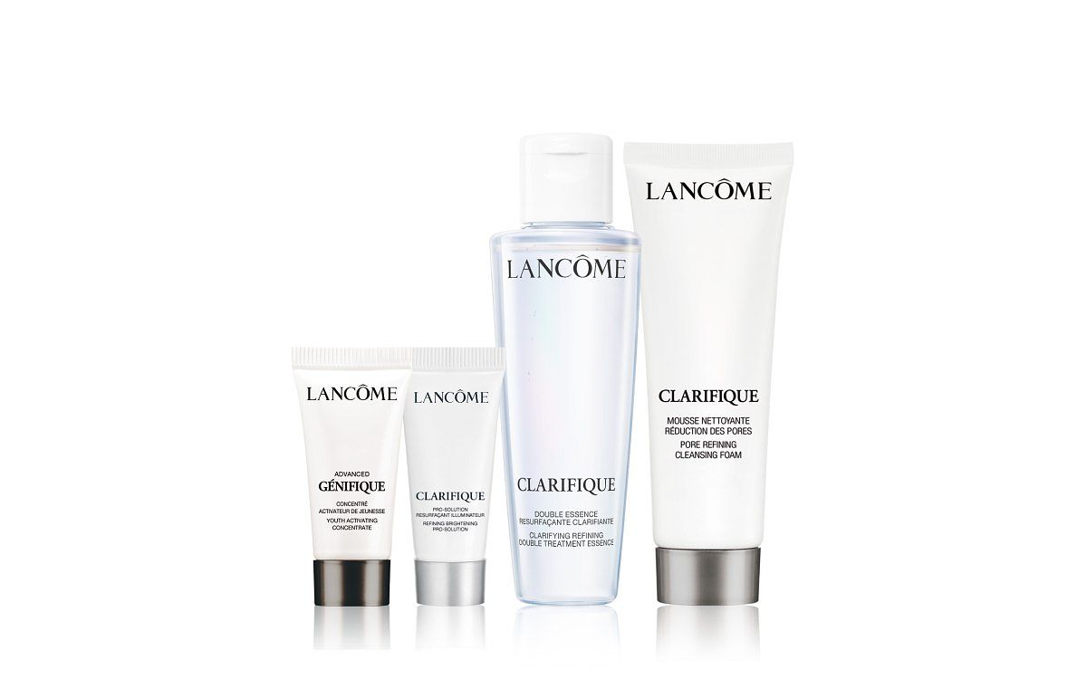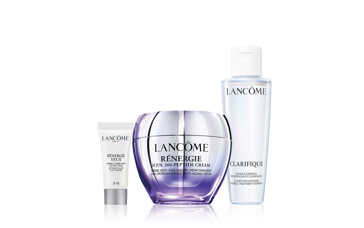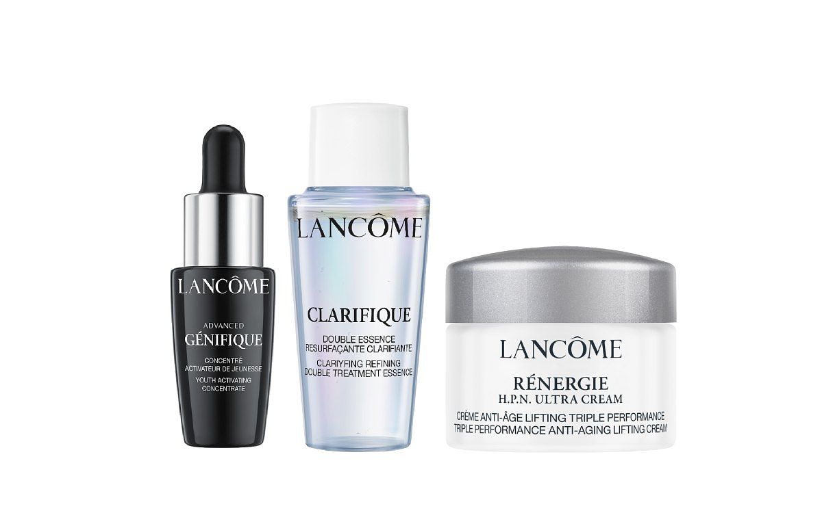 於蘭蔻專櫃購買正產品滿 NTD 13,900 (需內含 NTD 4,700 正產品) 即贈「超緊顏修護旅行組」+「玫瑰光采隨行瓶」+「晶透潔顏泡沫200ML」
