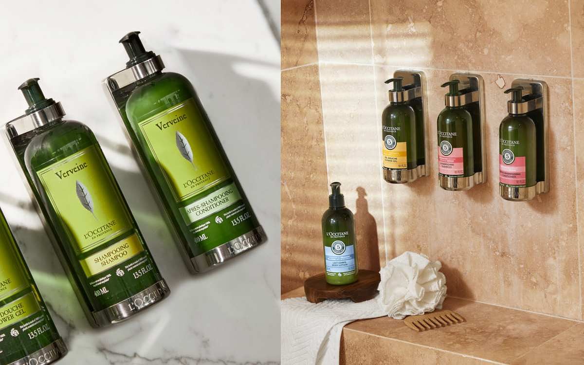 圖片來源:L'OCCITANE 環保補充包在L'OCCITANE歐舒丹銷售額中占很大比率,2022年全球合計銷售近400萬包。根據不同產品系列,環保補充包的銷售額預計將成長10%至20%,因此未來將逐漸全面取代現有補充包的環保補充瓶推出後,有助於進一步推動消費習慣的正向循環。台灣環保署同時也公告將自2025年起全面限用一次性備品,而環保先驅歐舒丹早已是永續旅遊的推手,為五星級飯店、民宿、月子中心等合作夥伴提供100%可回收再生rPET塑料製成的300ml及400ml客房備品,大容量補充式備品相較於一次性備品能減少約57%塑料使用量,而後續所使用的企業夥伴專用1000ml補充包更能再減少85%塑料用量。從下一趟旅遊的100% rPET客房備品開始,讓旅行也成為改變的力量!