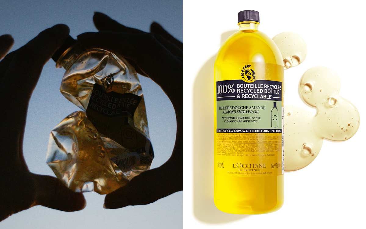 環保先驅L'OCCITANE歐舒丹持續耕耘改變,早於10數年前開始著手研究,推出以100%可回收再生塑料製作的全新型態環保補充瓶,為守護環境邁出一大步。自2008年L'OCCITANE歐舒丹推出環保補充包以來,已大幅節省塑料用量,包裝重量平均減少80%,這代表平均每年減少200噸塑料用量。除了節省塑料用量,L'OCCITANE歐舒丹更有進一步實踐,率先為每7秒銷售1瓶的杏仁沐浴油、乳油木潔手沐浴液式皂等清潔產品推出全新型態的環保補充瓶,以100%可回收再生rPET塑料製成,在緩衝性、輕盈性和耐用性之間取得平衡,有效保護及耐受運輸過程中的衝擊,減少碳足跡同時也帶來愉悅的顧客體驗,全新型態環保補充瓶相較原本同為500ml的環保包尺寸更加精巧、更符合人體工學,使用上也更為便利,帶來更美好的無痛減塑生活體驗。