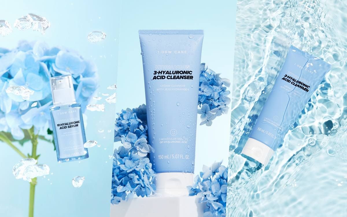 圖片來源:I DEW CARE全新水波波多重玻尿酸系列:包含水波波多重玻尿酸潔膚乳、水波波多重玻尿酸精華與水波波多重玻尿酸凝乳,為肌膚打造多道嚴密保濕屏障,同時從需要大量水分的繡球花獲得靈感,選用氣候溫和濕潤的濟州島繡球花萃取,透過賦予保濕舒緩,穩定膚況。分別搭載3重、8重與10重不同大小玻尿酸分子強力補給,造水、補水與鎖水,幫肌膚解渴,大分子玻尿酸鎖住表層易流失水分,在肌表形成鎖水膜;中分子玻尿酸深入肌膚持續補水,維持水潤;最後小分子玻尿酸在底層持續造水,幫助膠原蛋白形成,提升保濕彈力,層層注入爆水能量,安撫缺水危肌建立健康膚況,肌膚喝飽水,由內支撐起健康膚況與彈力,重拾細緻肌表,更增添飽滿澎彈透亮,快速擁有原生幼態肌。
