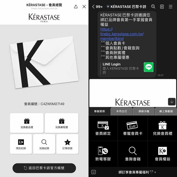 除此之外,自2024/05/01起,「巴黎卡詩全通路會員計畫」也正式啟動。包含:沙龍*、百貨專櫃與線上momo百貨的全通路。凡消費者購買巴黎卡詩商品或沙龍專屬指定療程。消費即享會員點數累計,每元享1點累積,並隨會員檻級加乘,並可參與會員點數消費累積和點數兌換活動。現在只要加入KÉRASTASE巴黎卡詩官方LINE帳號並完成會員個人綁定,即可立即成為會員。完整會員計畫請搜尋「巴黎卡詩會員權益」或參考KÉRASTASE巴黎卡詩官方LINE官方內帳號內說明。*沙龍:係指已與巴黎卡詩於官方LINE帳號公告之旗艦沙龍。