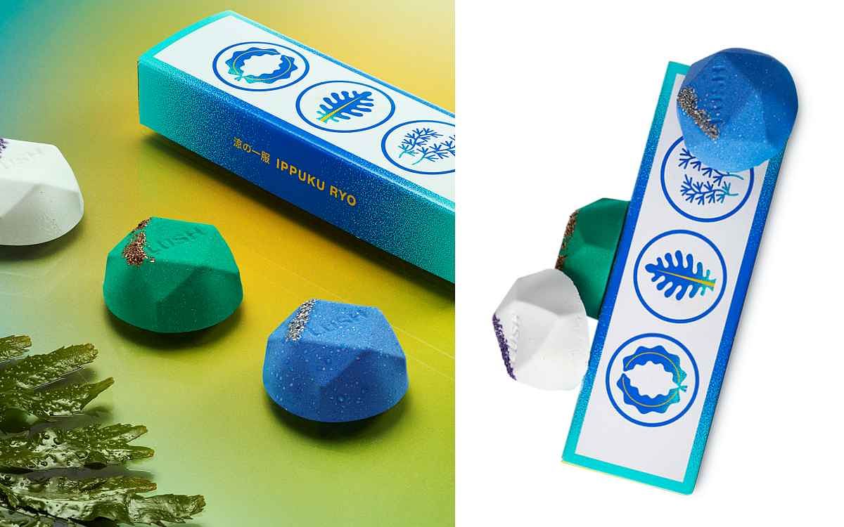 「涼の一服」是一個受日本煥發身心的浸浴藝術所啟發,集合了冰涼、活力及清爽的浸浴三重奏。日本「一服」的概念是指在一整天中做簡單的休息,就如喝一口英式紅茶,輕鬆就能轉換心情,讓你放慢腳步,品味當下。一服迷你汽泡彈組合是與 Lush 的日本創意團隊共同合作研發,對他們而言,浸浴是一種藝術。每個 45 克的汽泡彈均使用了啟發自傳統療法的原料,而「涼の一服」是由一個日本煥發身心的浸浴藝術所啟發, 結合了清爽和營養豐富的海藻浸浴三重奏。