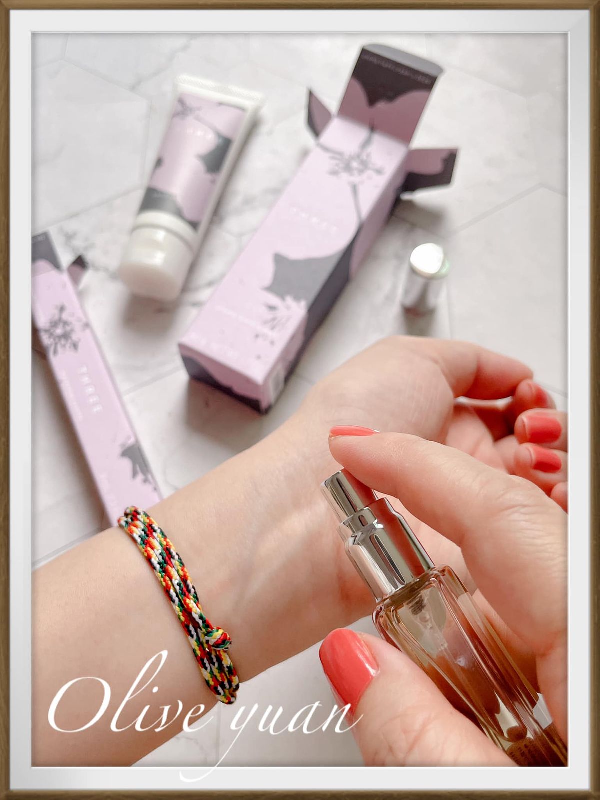 很妙喔!不論是香水或護手霜,到最後都會聞到一股糖漬櫻花的味道,甜甜的很可愛。但THREE已經宣佈退出台灣,所以東方美集團官網的THREE特賣活動真的很值得逛逛,建議大家美容油相關都要搶,還有卸妝油啦!