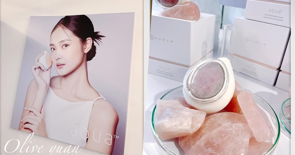 「NUEVA AQUA水水蛋(有粉紅、白2色NT7,290)」導入面是100%南非天然玫瑰晶礦(招桃花喔),可全機水洗。紅光針對深層,改善細紋、緊緻彈力!藍光針對油水平衡,改善油光粉痘!黃光針對補水保濕,「水光活萃系列精華液」3種功效還能對應水水蛋的3種光美容。
