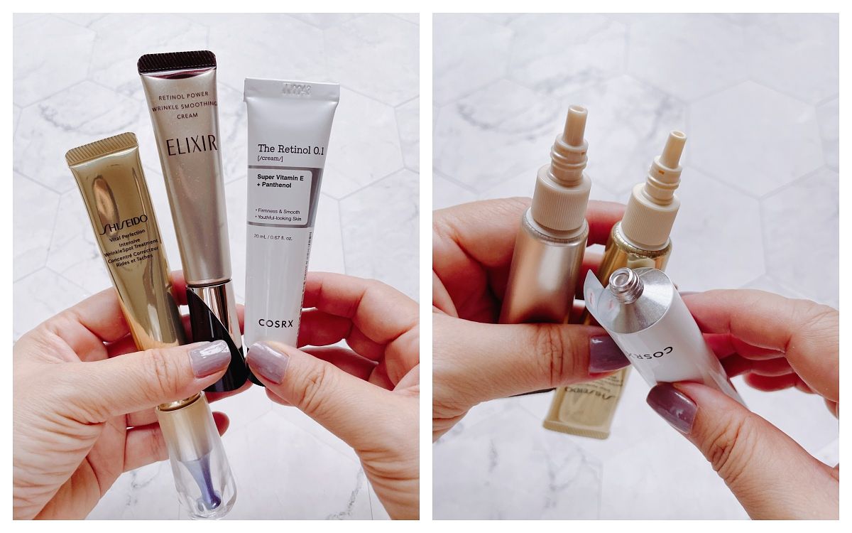 其實A醇怕光、怕熱、易氧化,所以日本「資生堂國際櫃抗皺精華乳」、「怡麗絲爾小金管」及「韓國COSRX」就採完全密封瓶裝,使用前才開封接觸空氣,也因為成分珍貴,又專門對抗老化、鬆、垮,所以早期大多為小ml數並〝局部使用〞,僅塗抹於在意部位,例如法令紋。