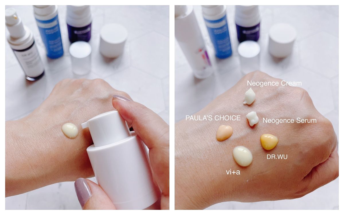 其實這3種都是維他命A的衍生物,加在一起除了可提高濃度,還能比單一A醇更容易被肌膚接受,初學者可參考,例如DR.WU及Neogence都是3A,另外Vi+a的A醇有微脂囊包覆,也會比較溫和,PAULA’S CHOICE則是添加A脂。