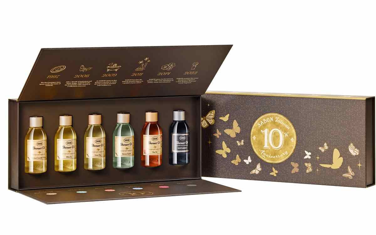SABON創作每一款香氛時,都有獨到的世界觀與靈感來源,眾多的香氣選擇注入在沐浴油中,滿足各種不同沐浴喜好。這次台灣限定推出的《台灣十週年沐浴油禮盒》,即裝載著6段香氛故事,細數SABON自1997以來走過的香氛旅程。