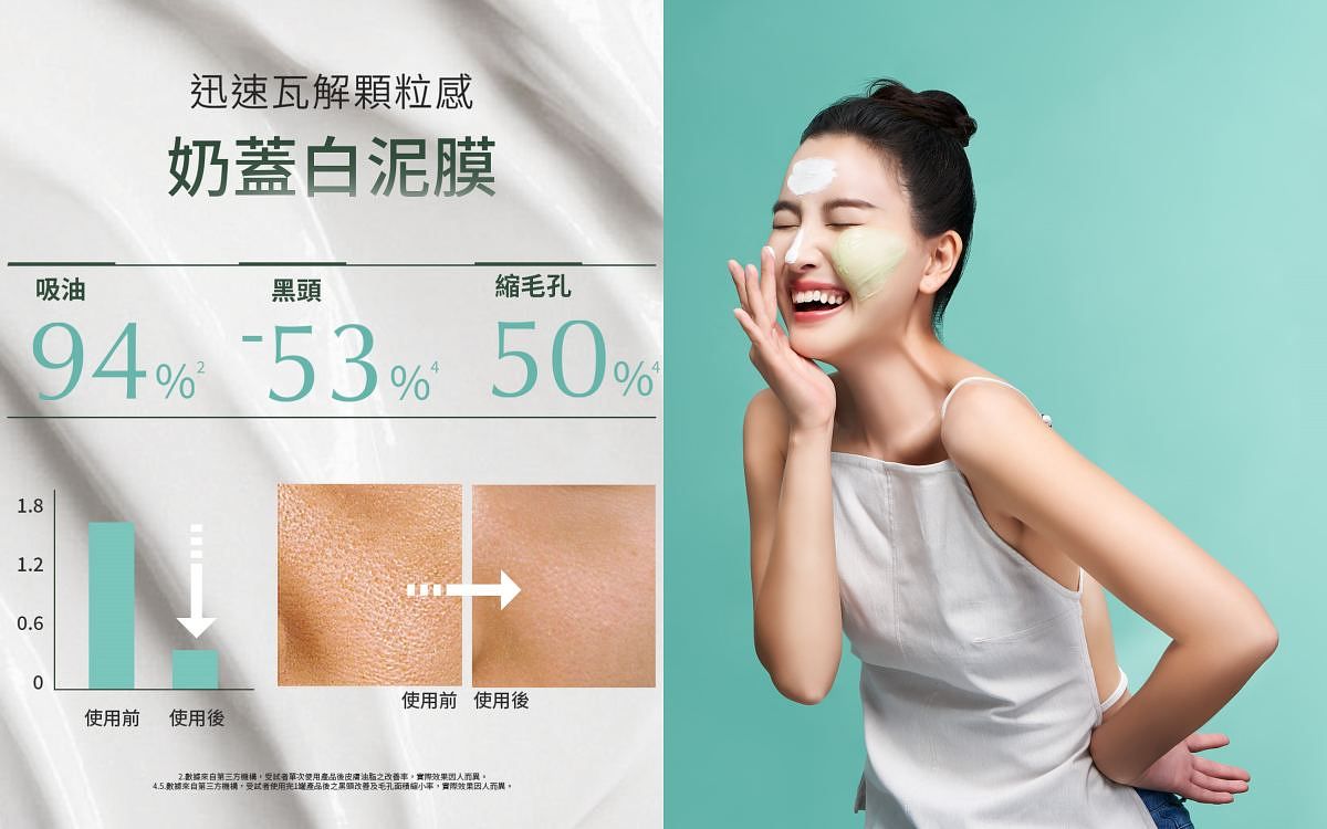 奶蓋白泥膜以日本岡山高嶺土為基底,極細微粒能夠深入毛孔中,吸附多餘的油脂與髒污,鬆動角栓和粉刺,再搭配品牌附贈的粉刺按摩刷於粉刺較多的區域輕輕按摩,即可逼出粉刺,使用後能夠降低T區油光與顆粒感,並且收斂毛孔、改善紋理。