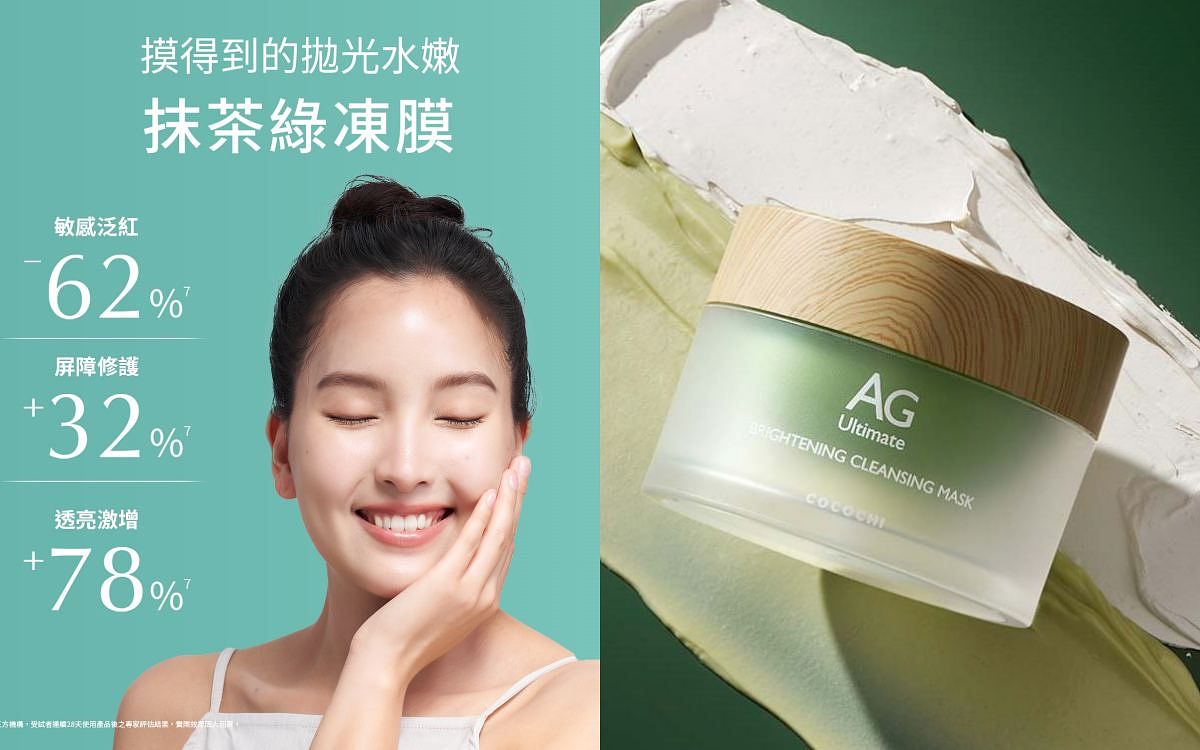 過往COCOCHI以好評熱銷的冰淇淋卸妝膏及霸榜日本樂天市場No.1的抗糖小金罐廣為人知,今年夏天針對最困擾亞洲人的混合性肌膚護理問題,推出極高話題性的新品AG分區淨透泥凍雙膜,發想嶄新的『抹茶奶蓋分區保養法』,10分鐘抹除油脂分泌失衡、毛孔粗大、敏感泛紅等煩惱!