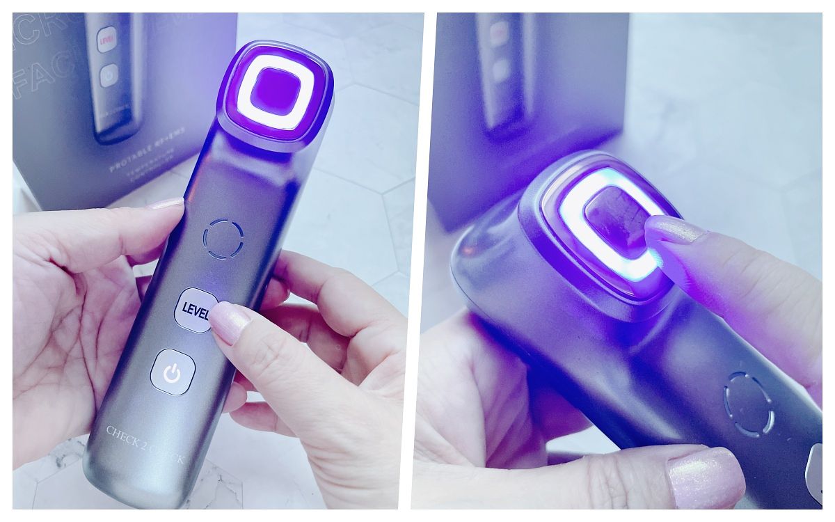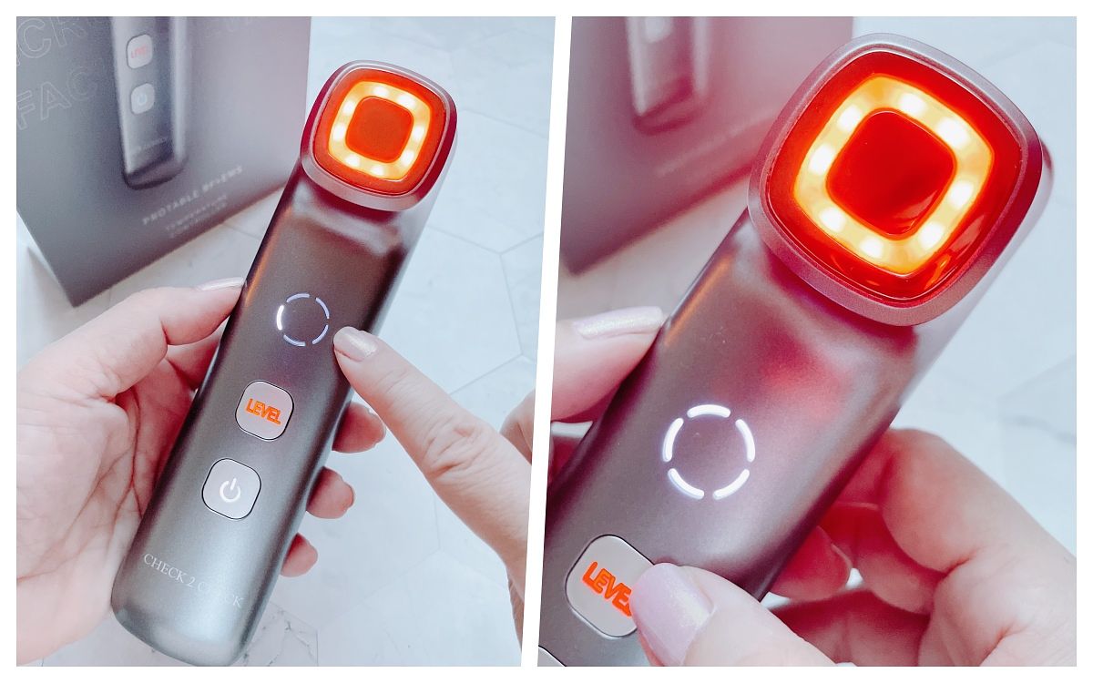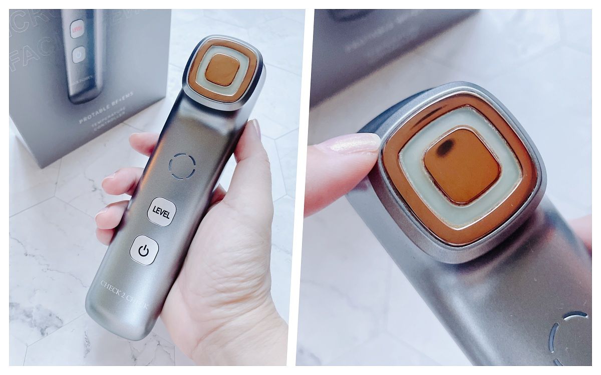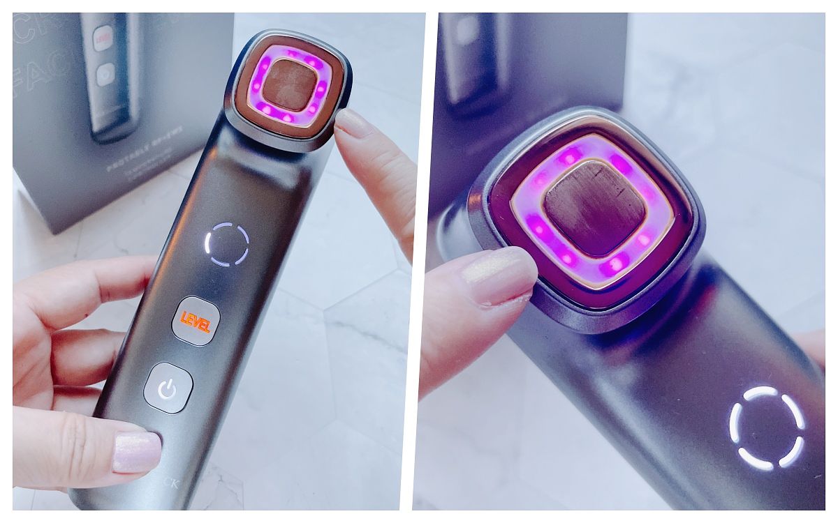 「紅色RF溫熱波」有5段式智能控溫,基本上我都調到最高,它的溫熱度可開啟吸收管道,還可搭配每分鐘7000次的「高頻微震按摩」,大大提升保養成分的吸收率,秋冬或冷氣房中一定要天天用!
