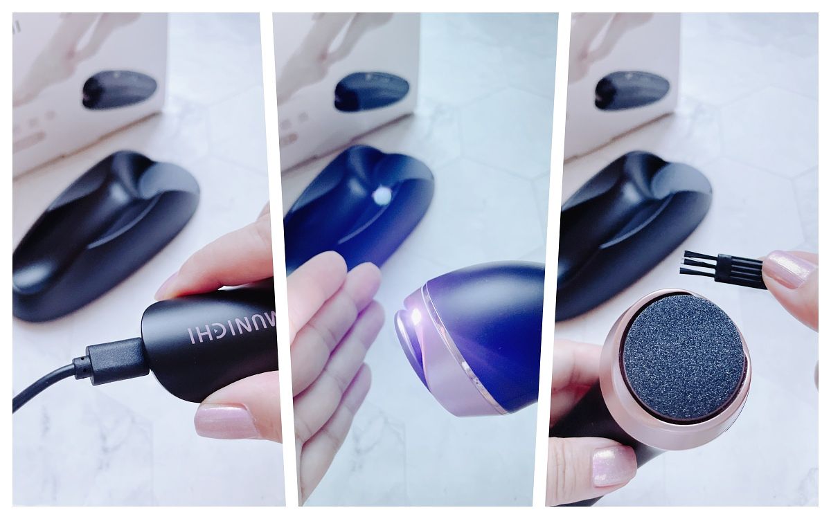 接著要同場加映這台美足機,因為對於美化粗腳皮的小家電,跟我一樣花不少冤枉錢的人應該很多,但現在終於找到這台修磨儀了!它有時尚專屬底座,人體工學握把好好用,開啟後還有清楚的電量顯示,及2段式強弱切換。