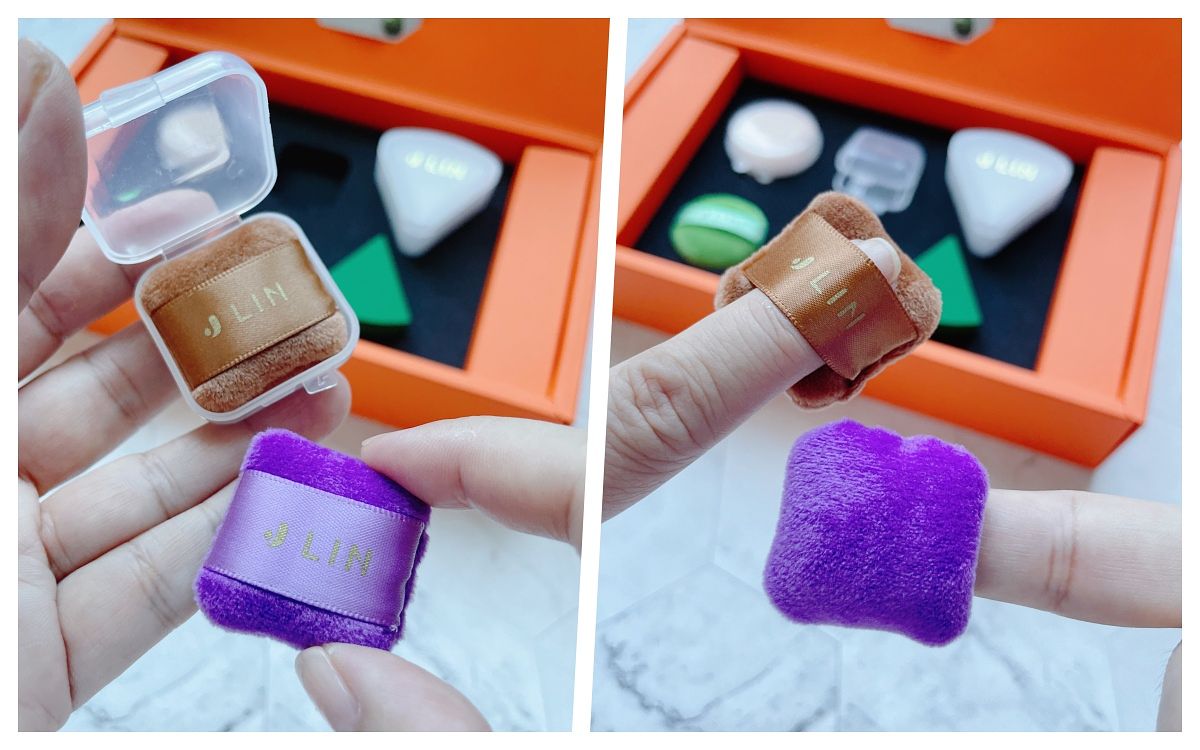 這些各形各色的手指粉撲是不是超可愛,還有跟自己一樣形狀的小收納盒,猛一看、還以為是新口味的馬卡龍!配合之前分享的旅行刷具,也要同步推出適合旅行用的小粉撲!