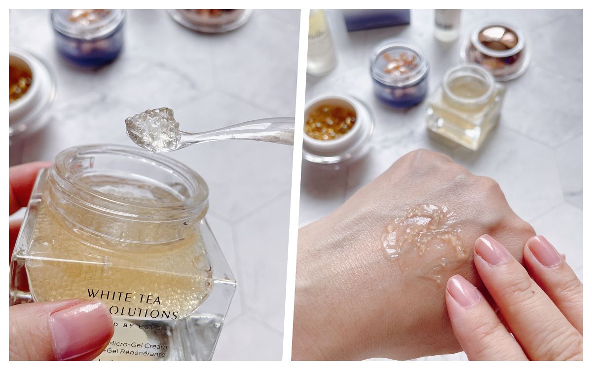 這款霜就是用來拯救不愛用霜,也不愛用油的人,它看起來就是透明的水凝Gel質地,連乳霜都不是,但每瓶含有6,000多顆珍貴微珠,用植物性海藻衍生膜做成的微珠中、包著富含脂質的白茶油,但你用的時候完全不會覺得油。