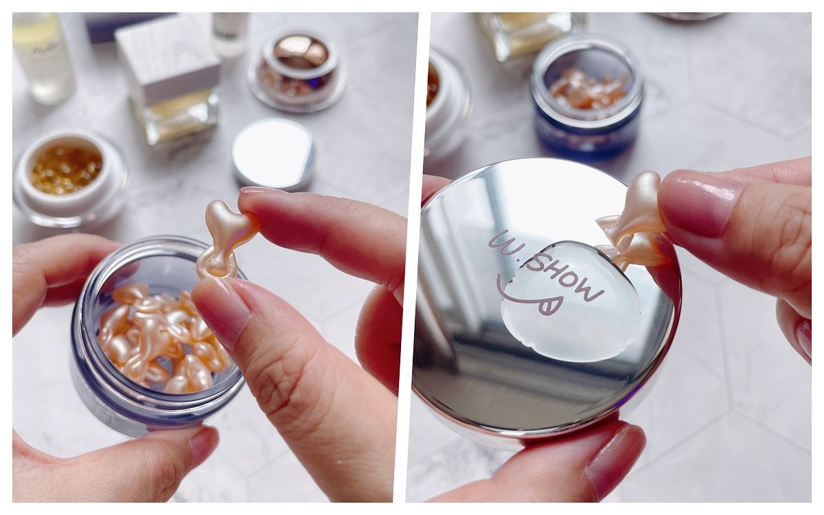 能讓你感覺不出“油感”的更棒用法,也是品牌總監建議的最佳用法,就是一顆膠囊對一片面膜,而且是膠囊抹上後“立刻”敷,我們還做過保水度測試,面膜前PLUS油膠囊的效果真的有差!搭配W.SHOW面膜效果當然更好囉!