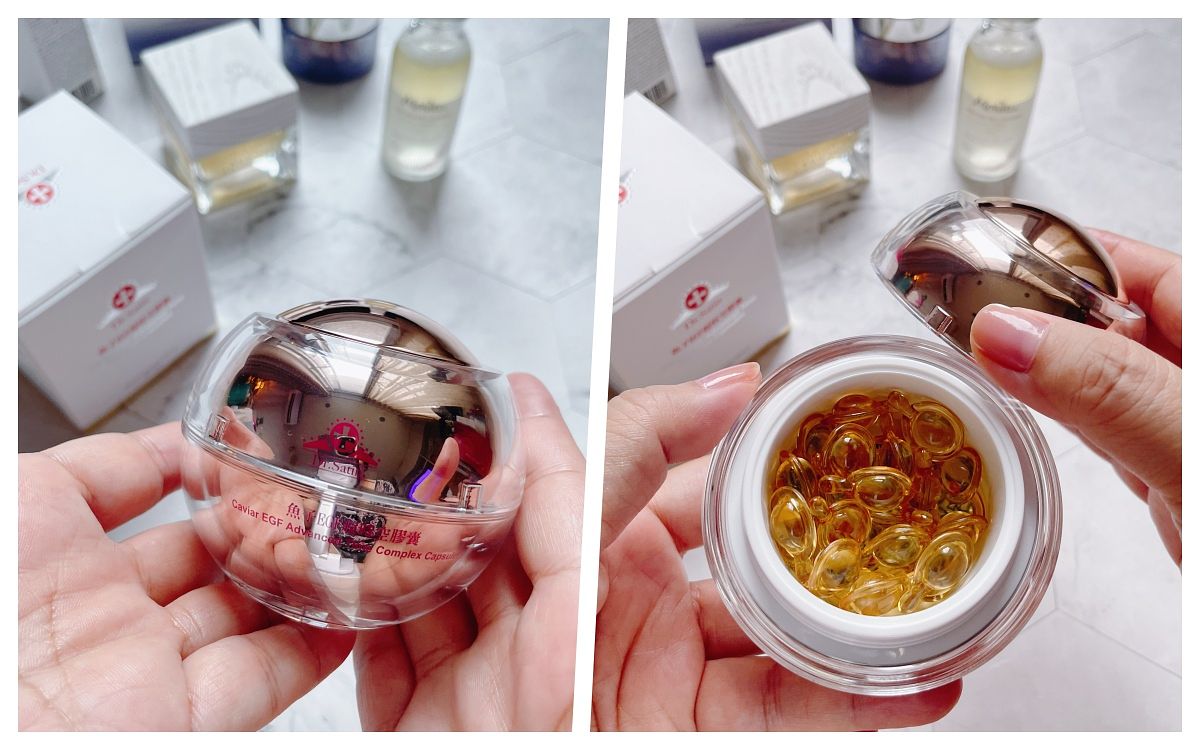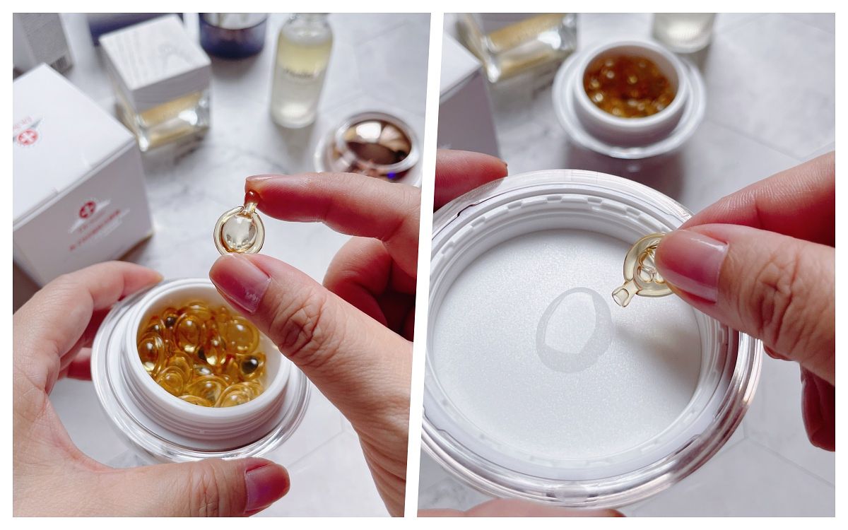而且Dr.Satin的明星成分就是「魚子精華」,加在油膠囊中還能有修護效果,再加上能緊緻肌膚的「維他命A脂」,所以~以小小一顆的油膠囊來說算是功效多多,保養程序為精華液步驟單擦,但初學者一樣能混和乳液或乳霜使用。