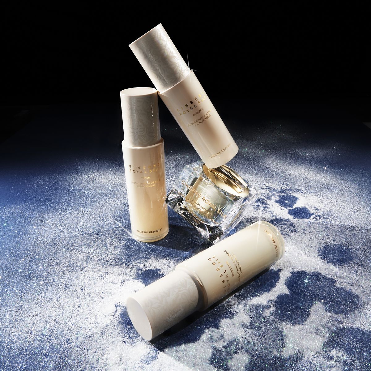「人蔘蜂王柔絲化妝水」質地清透如絲,瞬間滲透角質層,喚醒肌膚吸收力;「人蔘蜂王柔絲精華乳液」則以輕盈潤澤的質地包裹肌膚,長效鎖水、強化屏障。每一次塗抹,都是一場金色光的呵護,溫柔中帶著力量,如同東海說的:「真正的光采,來自持續的溫度。」