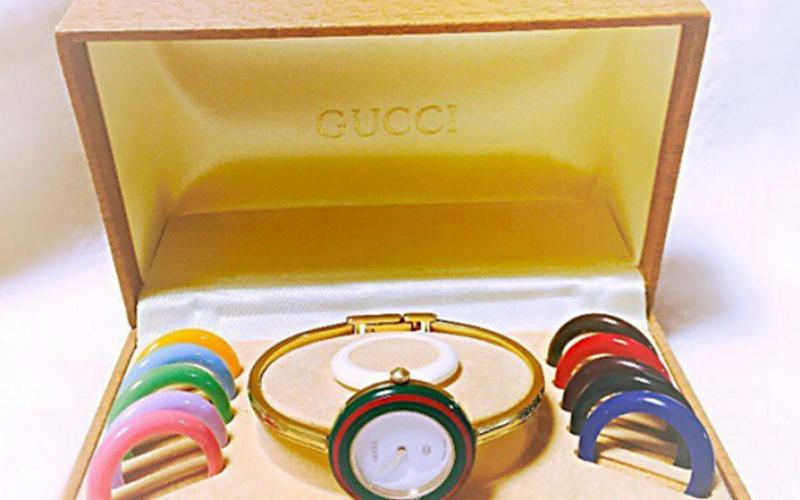 還記得80年代時,女孩們喜歡戴著大大的塑膠壓克力耳環、手環嗎?而GUCCI這款老式女錶就充分表現出那個年代的流行趨勢~
