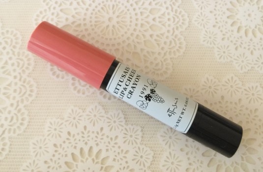ettusais的唇蠟筆一直都是女孩購買唇彩筆時的選擇,而這次日本ettusais推出了新的秋冬「唇頰蠟筆」,同時滿足唇彩、頰彩的需求。因應了秋冬妝容中酒紅色的趨勢,這款唇蠟筆外觀設計就像紅酒般,將品名,品牌創設年份貼在唇筆上,加上一串手繪葡萄的圖案,真的好像一瓶高雅的紅酒!