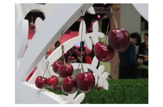 CLARINS克蘭詩智慧美白淡斑全系列上市發表會在敦化南路二段的豪宅敦峰1樓舉行,入口處除了大大的CLARINS字樣,還有顆櫻桃樹。