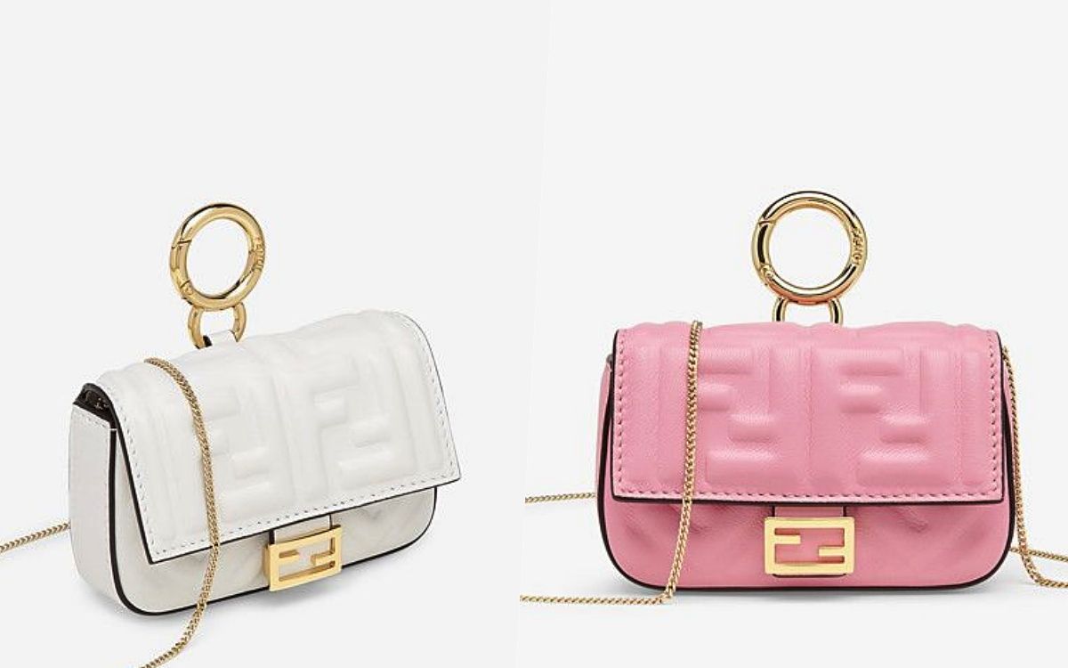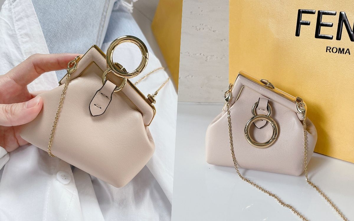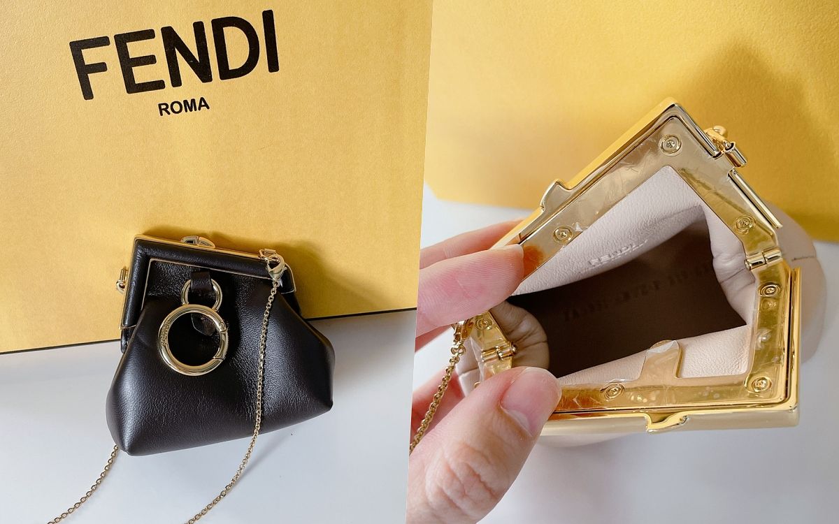 FENDI最新的FIRST系列包款,延伸出了精巧可愛的NANO FENDI FIRST包型,零錢包的容量設計、附有可拆式肩背帶,讓包款單獨揹出門可愛又別致,或者也能掛上包款當作吊飾使用。