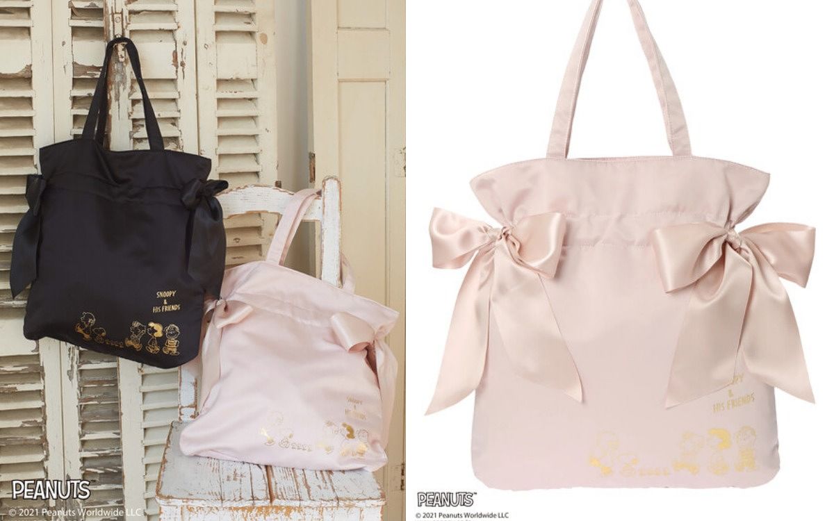 Maison de FLEUR最出名的就是它浪漫又溫柔的絕美提袋,保留了代表性的超大緞面蝴蝶結,在細節中燙印PEANUTS的可愛角色們,隱隱約約的奢華質感,不用怕卡通聯名太幼稚!