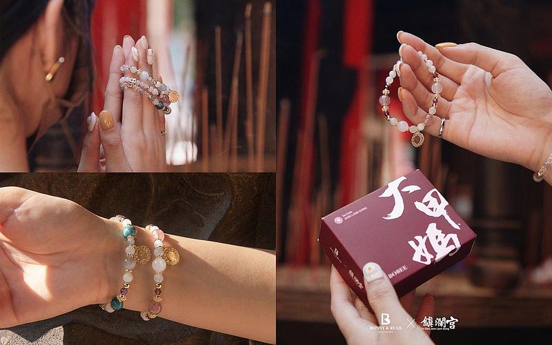 位於台中的大甲鎮瀾宮,是台灣媽祖信仰的代表廟宇之一,不論是求平安、求姻緣、求學業、求財富,能得到媽祖的保庇就能感到心裡踏實。BONNY&READ飾品有感於這一年來各行各業的艱辛,特別與大甲鎮瀾宮聯手打造開運飾品,選用近期相當受歡迎的天然晶石為主打,不只時髦,還能散發出正向能量,並以年輕世代的多元男女穿搭風格來構思,不論是手鍊、鎖骨鍊和皮件,都有多款質感色系選擇,不論單戴或是混搭都俐落有型,讓色彩來點綴日常穿搭。尾戒也特別推出男性款式,開運飾品也要時髦率性。品牌本次也親自帶著每款聯名飾品走訪大甲,經過鎮瀾宮協助拜拜與過爐儀式,用最虔誠的心,希望藉由大甲媽祖的保佑,能讓每個人都能用飾品讓內心獲得平靜和安定。