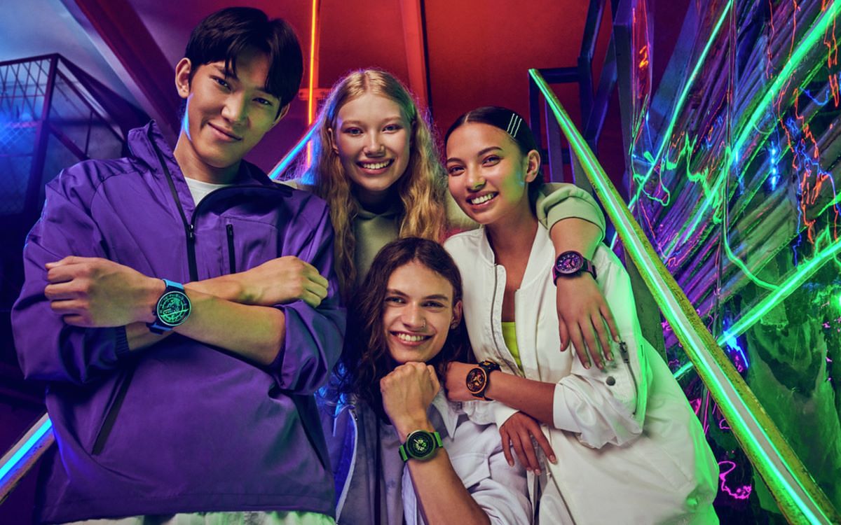 身為腕錶界的玩色大師,Swatch除了搭配猶如黑洞般深邃的黑色霧面錶帶與錶圈作為系列基色,運用紫色、綠色、橙色和藍色等絢麗四色勾勒出對未來星球之旅的想像。帶有神秘色彩的「紫色行星」在錶盤上放上CONTACT字樣,在接觸的那一刻時間開始倒置,打破既定的時空框架;對其他星球可能存在智慧生物憧憬的「綠色行星」推動著人類持續追尋一道未來綠光;那股源源不斷的動能化作「橙色行星」充滿活力和希望;而在錶盤強調數字”2”,相信除了無與倫比的地球之外還能找到第二個美麗的「藍色行星」,在這無垠宇宙存在著與地球相比擬的第二個家。
