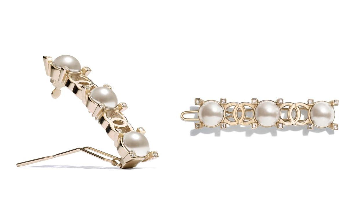 這款隱藏版髮夾以珍珠和水鑽、香奈兒標誌相互交織,獨具復古風格且典雅細膩,巧妙繫上就能成為造型亮點所在。