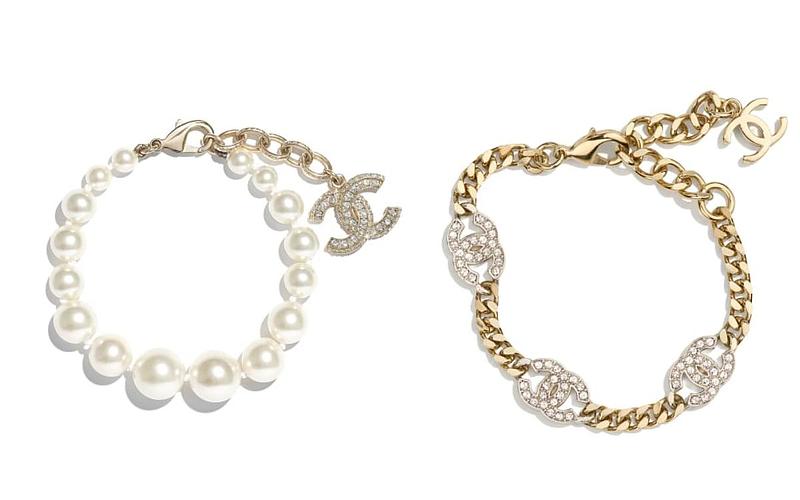 香奈兒金屬琉璃珠手鏈NT$ 16,500(左)