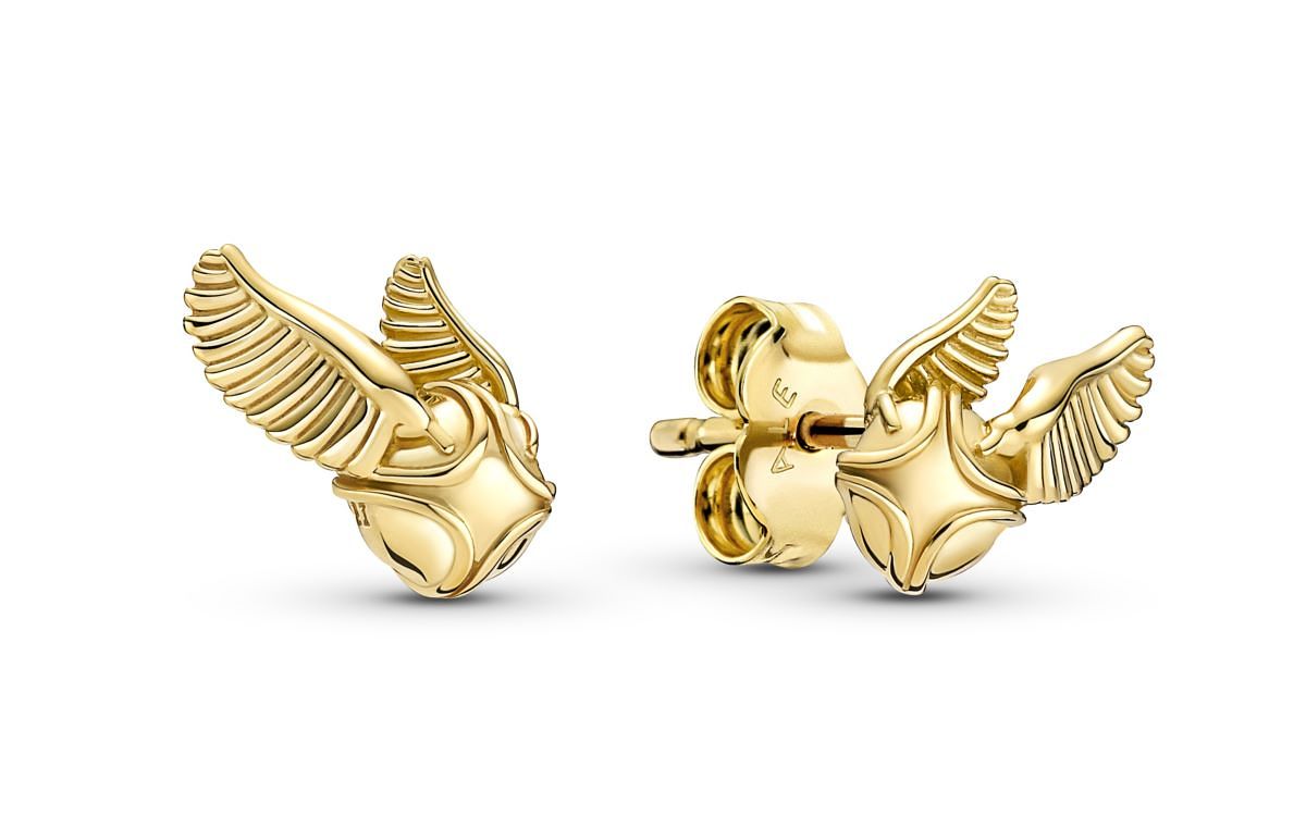 《哈利波特》金探子針式耳環是Harry Potter x Pandora系列的第一款針式耳環,採用鍍14k金工藝,啟發自著名魁地奇比賽中最小的金色圓球,配合旋轉翅膀和環紋細節,令每個演繹金探子耳環的哈利波特迷都能在球場上疾速飛行,在球隊輕鬆獲勝。NT 2,480