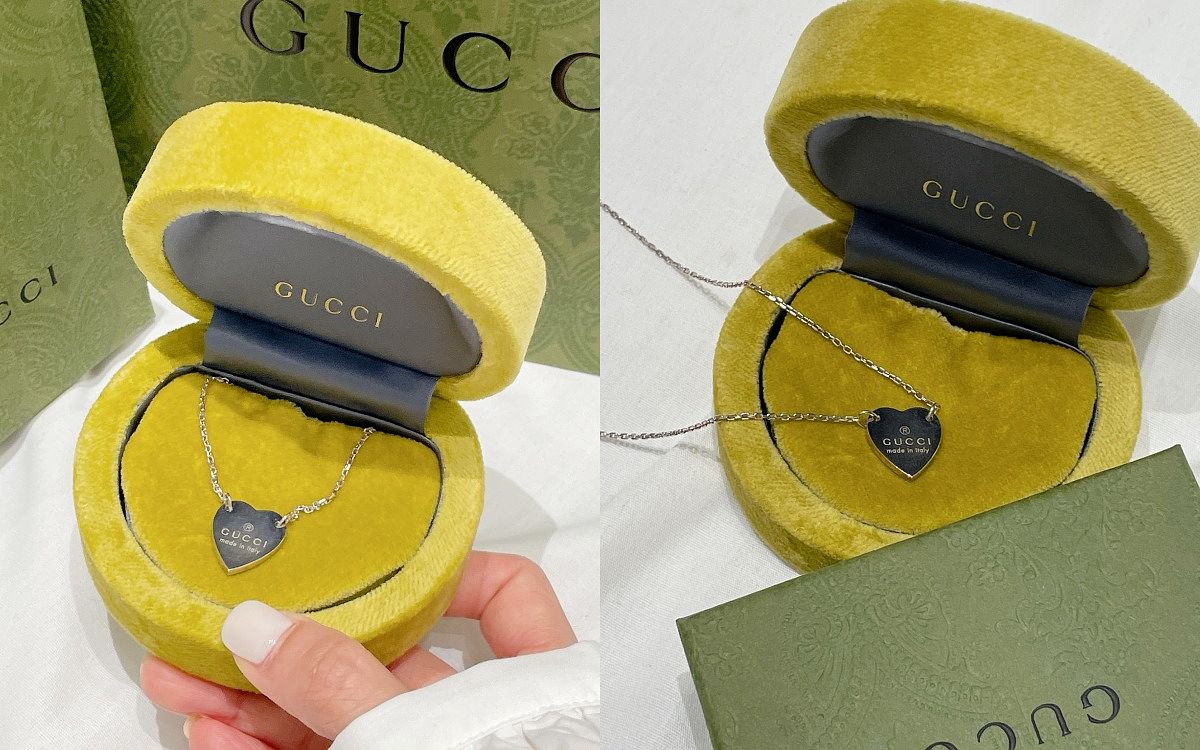 GUCCI飾品真的超適合小資女首次入門!有許多千元就能買到的珠寶作品,像是這款愛心吊牌,運用這個歷久不衰的設計,並在心型上雕刻著GUCCI商標,飾品材質採用925銀製作,簡約又有時尚感,生日禮物收到這個,光看到包裝就超開心!