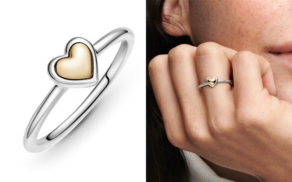 PANDORA今年推出了多種愛心小戒指,每款都讓人好心動喔!以圓拱金心戒指,雙色金屬設中間飾以一顆拱起的14k金心形,細膩精緻的外觀襯托出纖細手指。
