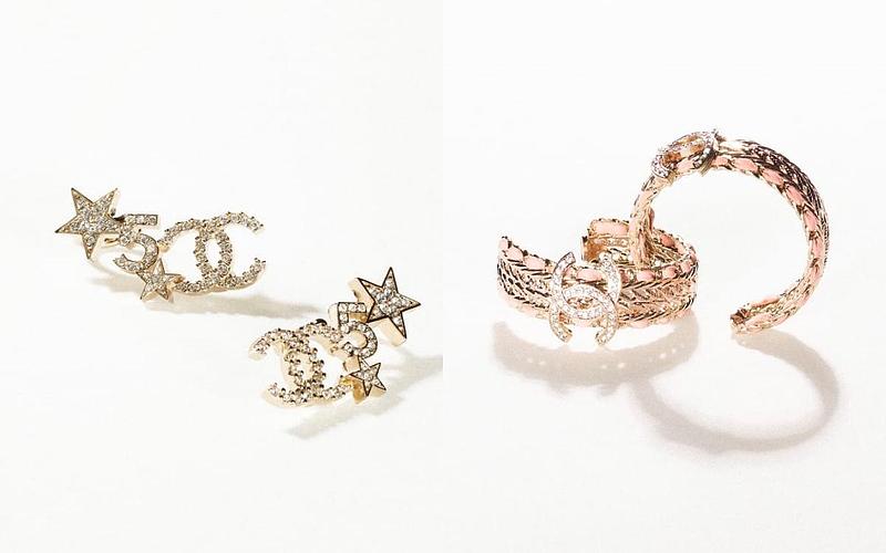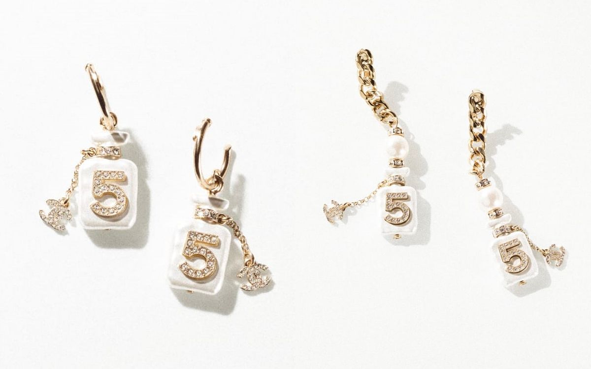最新一季的飾品加入了許多CHANEL No.5的設計靈感,以經典款香水結合細緻的雙C吊飾,滿滿的存在感妝點於耳間,讓穿搭瞬間充滿時尚感,今年快將這系列列入必搶清單吧!