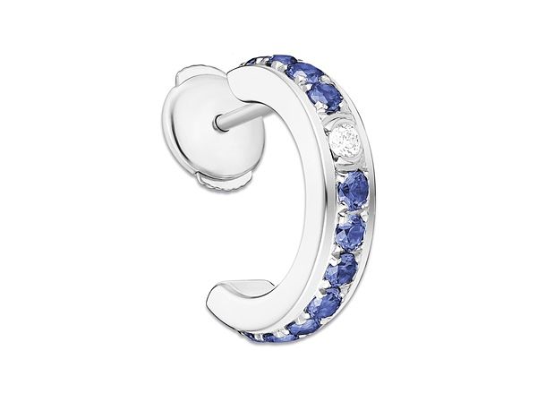 18K白金、單顆圓形切割美鑽,重約 0.01ct、12顆圓形切割藍寶石,總重約 0.16ct