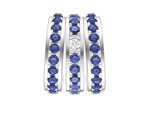 18K白金、單顆圓形切割美鑽,重約 0.01ct、40顆圓形切割藍寶石,總重約 0.56ct