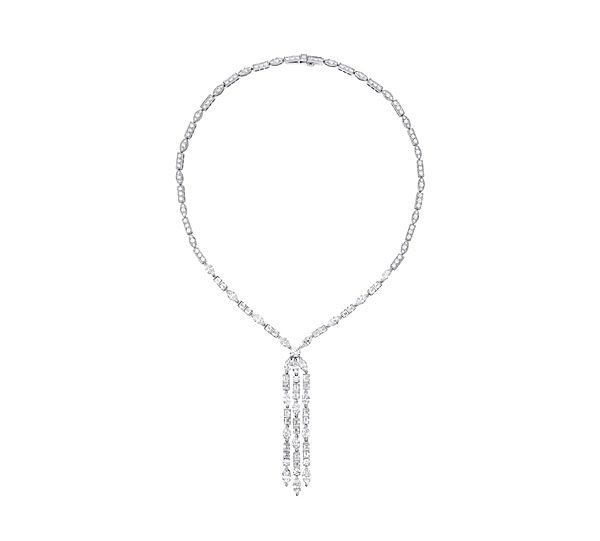 18K 白金,20 顆欖尖形切割美鑽,總重約 11.20cts、108 顆圓形切割美鑽,總重約 6.17cts、30 顆長形切割美鑽,總重約 6.00cts