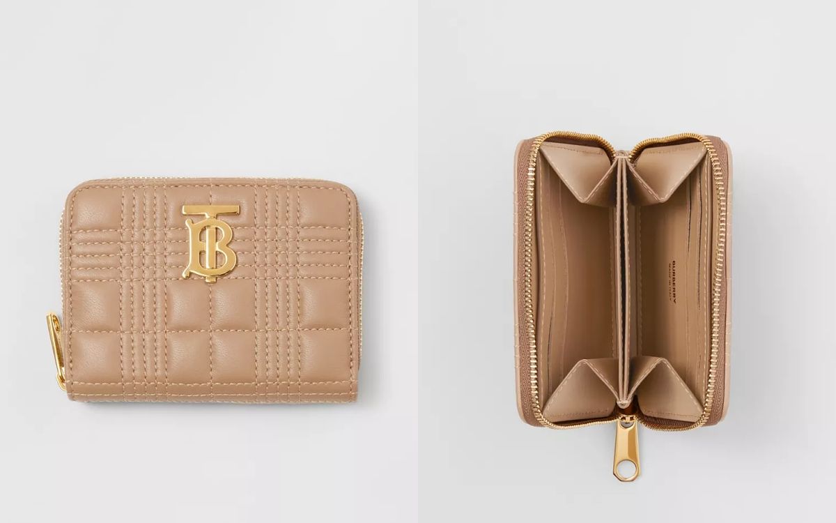 BURBERRY經典Lola系列,澎澎完美質感皮革點綴著經典TB標誌,內裡配有多卡層夾層可放置卡片,鈔票也可摺起收納於夾層中,如果容量需求不大可以考慮這款唷!
