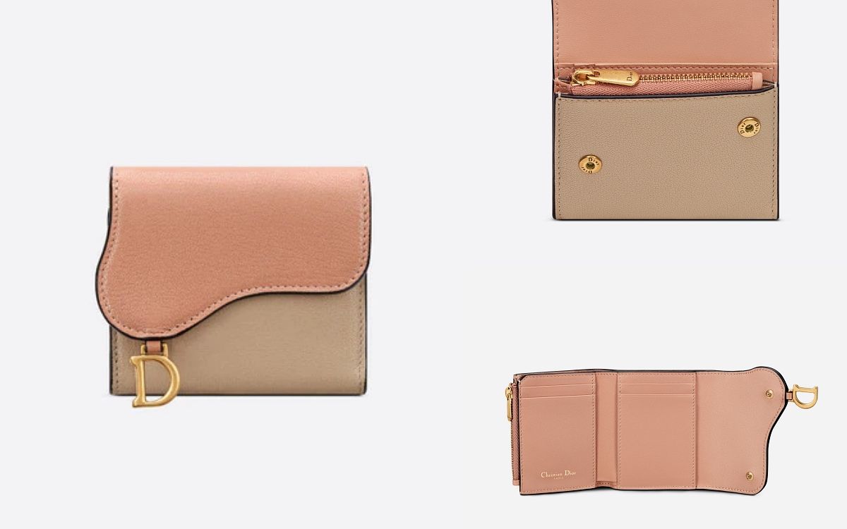 DIOR首選入門款,Saddle Lotus皮夾,以雙色陶土色和 Rose des Vents 亮面山羊皮製成,設有不對稱翻蓋和復古金色色調金屬「D」形馬蹬。這款雋永的配飾可收納所有必需品,並可輕鬆放入任何手袋中