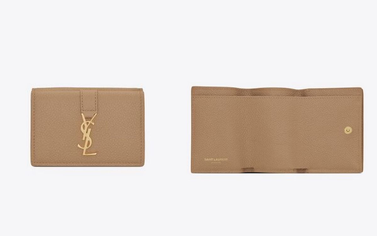 SAINT LAURENT這款折疊錢包,可以輕鬆放入迷你小包包中,皮夾中央還飾有經典YSL字母,一萬多入門價搭配迷人的奶茶色系,讓人更加心動了!