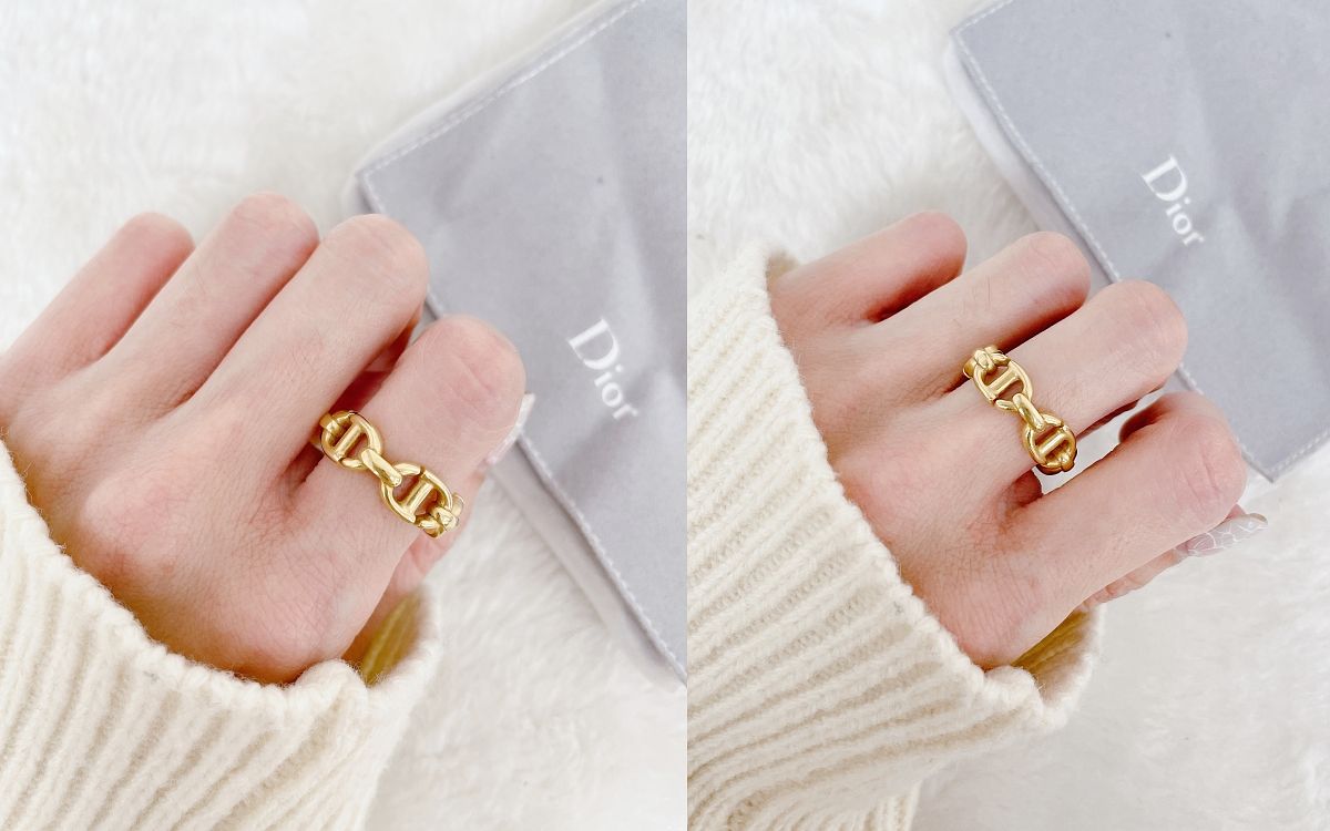 Dior這款CD NAVY戒指造型精巧細緻,古銅金色耐看又時髦,天天配戴完全沒問題、完全是為整體造型巧妙增色的迷人逸品,價格萬元初就能入手,送給媽媽或者戴母女戒都完全可以!