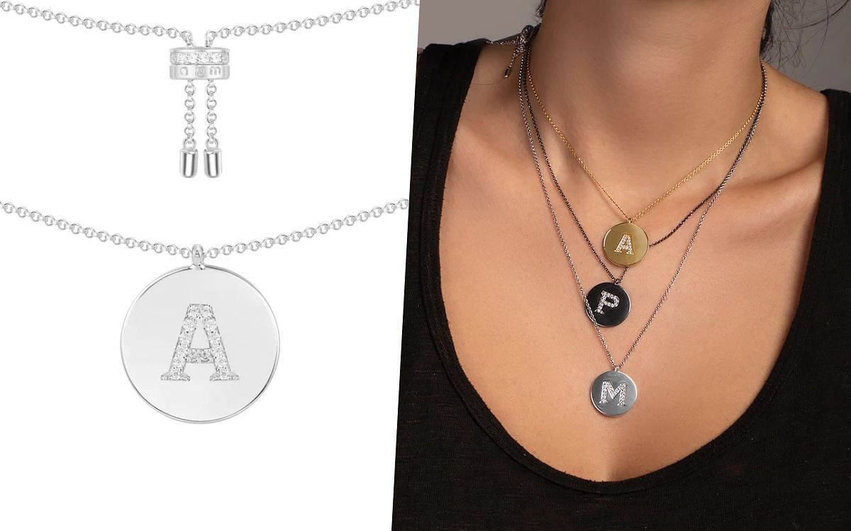 既俐落個性又帶有現代都會感的APM飾品,絕對是女生們日常妝點造型的絕佳配件!飾有閃亮鋯石的圓盤型字母項鍊,活潑且富有朝氣與靈動感,能輕鬆為妳的風格注入時尚和個性韻味,且項鍊可隨意調整長度的設計能夠符合生活中各種疊戴或搭配需求。