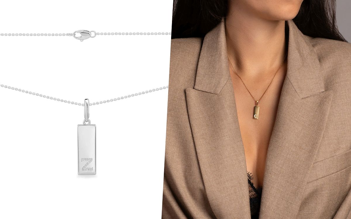 而除了圓盤型的款式外,APM也再以長型吊牌形狀為設計,推出另一款字母吊牌項鍊,風格更加成熟雅致且帶有一絲女人味的小性感,垂掛在胸前隨著動作擺動,散發誘人的魅力。此款的吊墜可拆卸,可添加其他字母或將其掛扣上其他項鍊也沒問題。