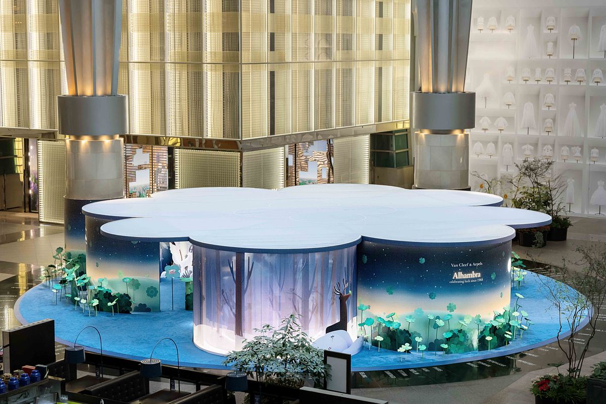 品牌標誌性的四葉幸運圖騰在迷人的 Alhambra 展覽中綻放