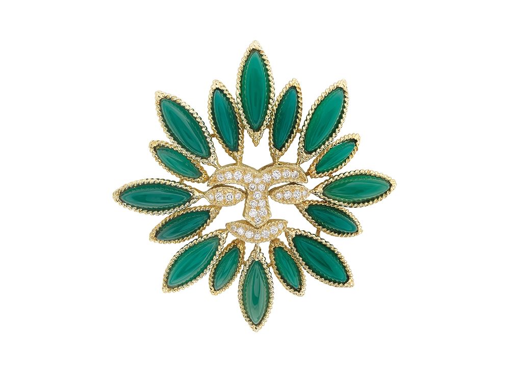 Arpels 家族兄弟遍遊亞洲後,帶回豐沛的靈感與非凡的寶石,為珠寶注入更多色彩,更讓 60-70 年代的珠寶展現異國風情。此次也將首度在台亮相的兩枚胸針也深受印度風格影響,1973 年的 Trèfle 胸針,黃 K 金鑲嵌綠玉髓及鑽石;濃郁的綠玉髓演繹出創作時代的獨特風格。同一時期的 1974 年 Sun pendant 胸針,黃 K 金鑲嵌瑪瑙及鑽石,勾勒出生動的曲線,至今別在身上依然很優雅時髦!