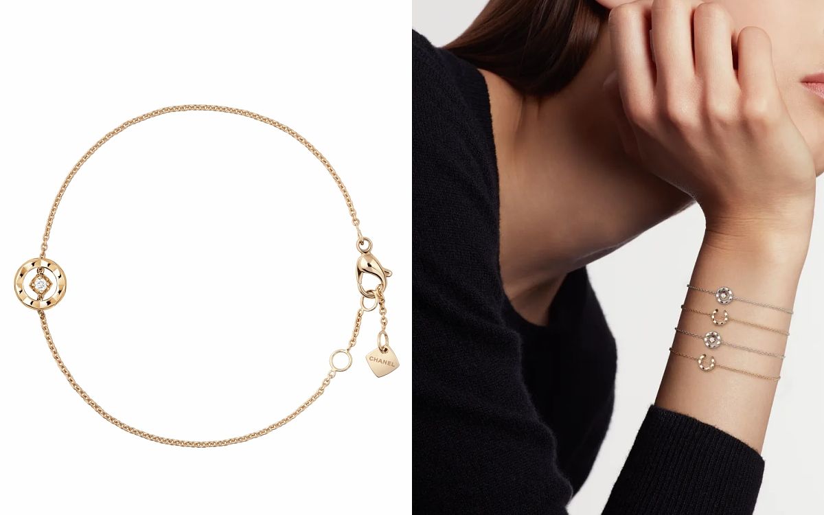 COCO手鍊也同步推出了以鏤空菱格紋O字型為設計,且中間鑲有一顆鑽石的款式,非常推薦和前一款C字手鍊疊戴搭配,使整體顯現出豐沛視覺層次,若想要單戴也是十分有存在感,經典中帶點高級奢華的亮眼感根精緻度,立刻替全身的裝扮加分不少!