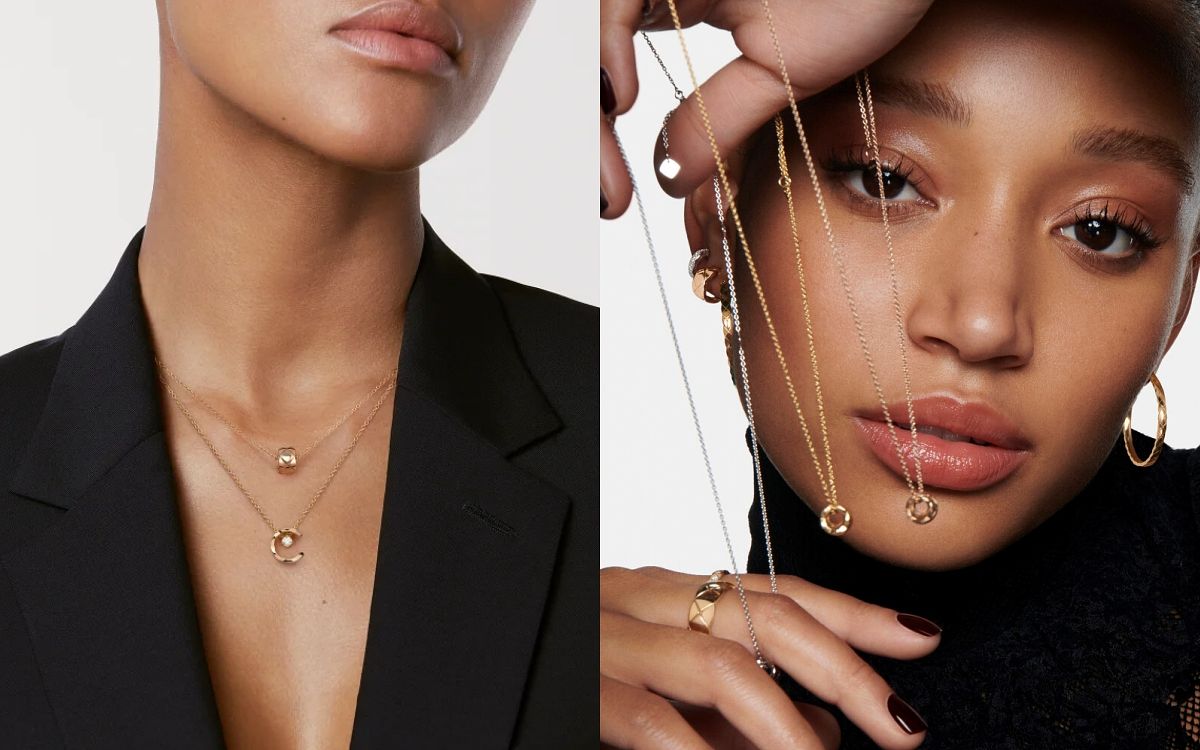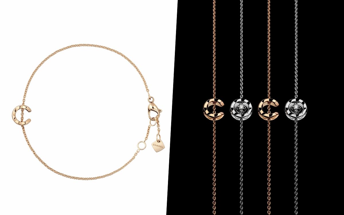 此次香奈兒COCO CRUSH推出的全新設計飾品系列除了有首次出現的手鍊外,還有一款經典菱格紋的項鍊,以大家熟知的寬版大菱格紋為吊墜設計,創造出隨性不做作的態度,但其中又中藏有女性的優雅知性氣質,配戴在胸前絕對搶眼滿分,另外鍊帶設有多個調節環圈,可將項鍊調節至長款或短款來自由配戴。