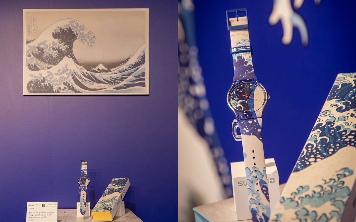 與阿布達比羅浮宮 (Louvre Abu Dhabi) 的首度合作中, Swatch 推出一款眾所期待的腕錶, 融合了葛飾北齋 (Hokusai) 強大且經典的日式藝術品和穆罕默德. 伊本. 阿曼德 (Muhammad ibn Ahmad al-Battûtî) 著名的精緻星象盤傑作。Swatch x LOUVRE ABU DHABI 腕 錶 將 於 2023 年 4 月 13 日 起 在Swatch 門市和 Swatch.com 上發售。