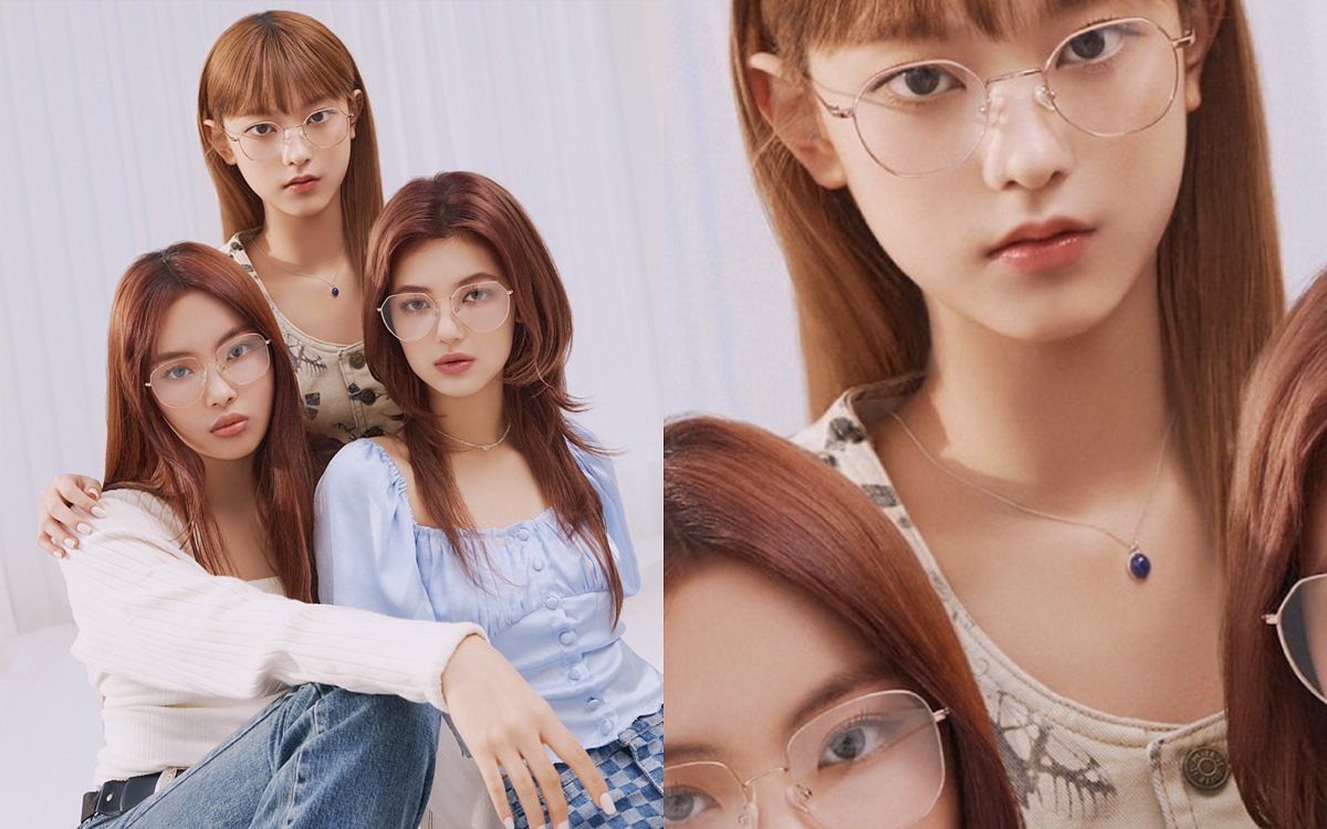 CARIN的新品KRISTEN R是韓國最指標性的美式復古潮流款,貓眼款設計配上韓妞必備的Y2K風潮果凍感粗框墨鏡,除了要有百搭的黑色與玳瑁色,一定還要有副春夏色彩的粗框款式,成為整體穿搭的亮點配件。Hanni(范玉欣 하니) 選擇青春氣息濃厚的透莓果粉色,還有不敗經典白奶茶是Haerin(姜諧潾 강해린)和Danielle(丹妮爾 다니엘 )的配戴款,極具特色的鏡框設計和鮮明的色調充分展現韓流的時尚魅力。