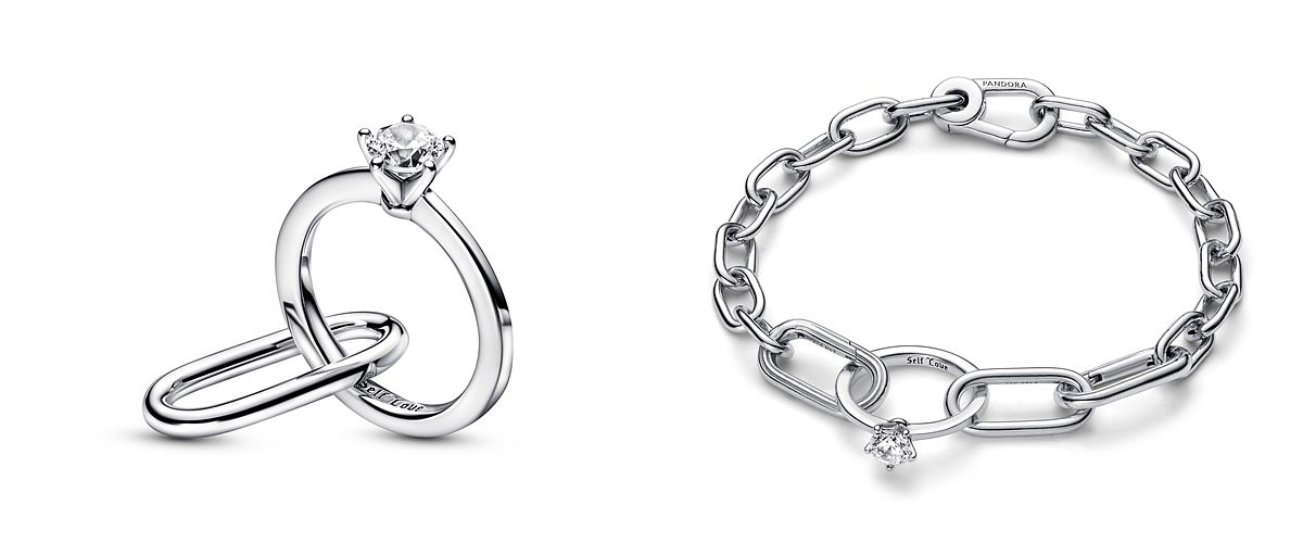 「個性」作為這一系列的核心所在,擁有千百種可能性的PANDORA ME系列,透過飾鏈的一環一釦,鼓勵Z世代大膽創新,隨心自由串起專屬的珠寶組合。系列推出多款雙鏈圈連接釦,其中Pandora ME 「Marry ME」雙鏈圈,以圓角長方形鏈圈釦連一枚小巧的單石戒指,戒指內圈鑄刻”Self Love”字樣,時刻提醒你在表達獨特時尚宣言的同時,不忘要好好愛自己。