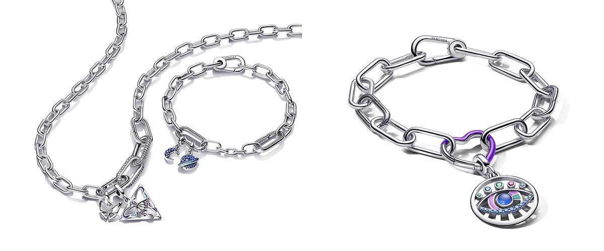 由美國大碼名模Barbie Ferreira呈現的珠寶串飾系列,搶眼演繹Pandora ME 鎖鏈圈手鏈及項鏈,配上以紫色系為靈感的串飾造型,當中包括Pandora ME 守護之眼圓牌吊飾、Pandora ME 鮮亮紫心形連接釦、Pandora ME 蝴蝶三角牌吊飾以及項鏈上的Pandora ME 指南針圓牌吊飾,盡展美不需要外界來定義的個性!